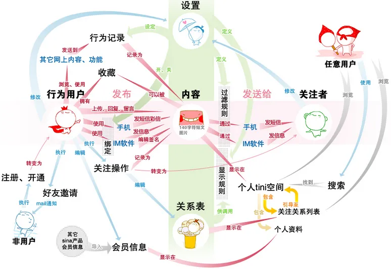我们先看一张微博的核心业务图(如下),是不是非常复杂?但这已经是一个简化的不能再简化的业务图了,第三代技术体系就是为了保障在微博核心业务上快速、高效、可靠地发布新产品新功能。