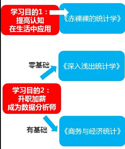 如果你的学习目的是:提高认知,将统计概率应用在生活中,用于指导你面对重大决策时做出最好的选择,你的应该看《赤裸裸的统计学》这本书就够了。