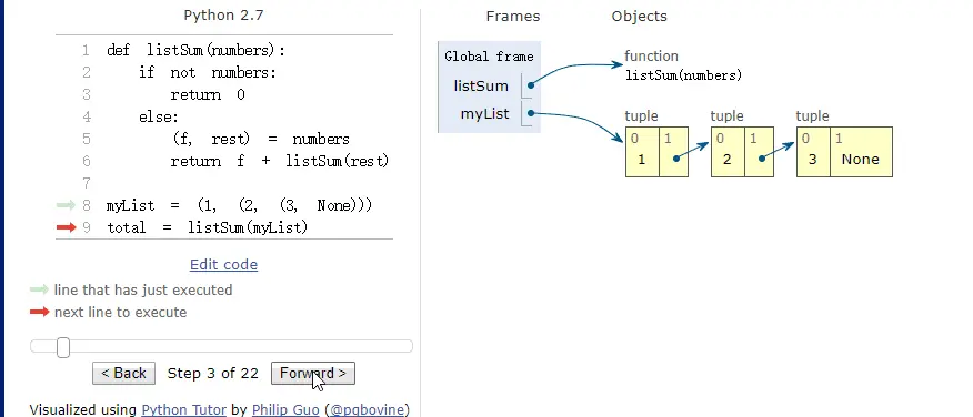 如果你不知道代码在内存中是如何运行的,不妨把它拷贝到Tutor里可视化执行一遍,加深理解。