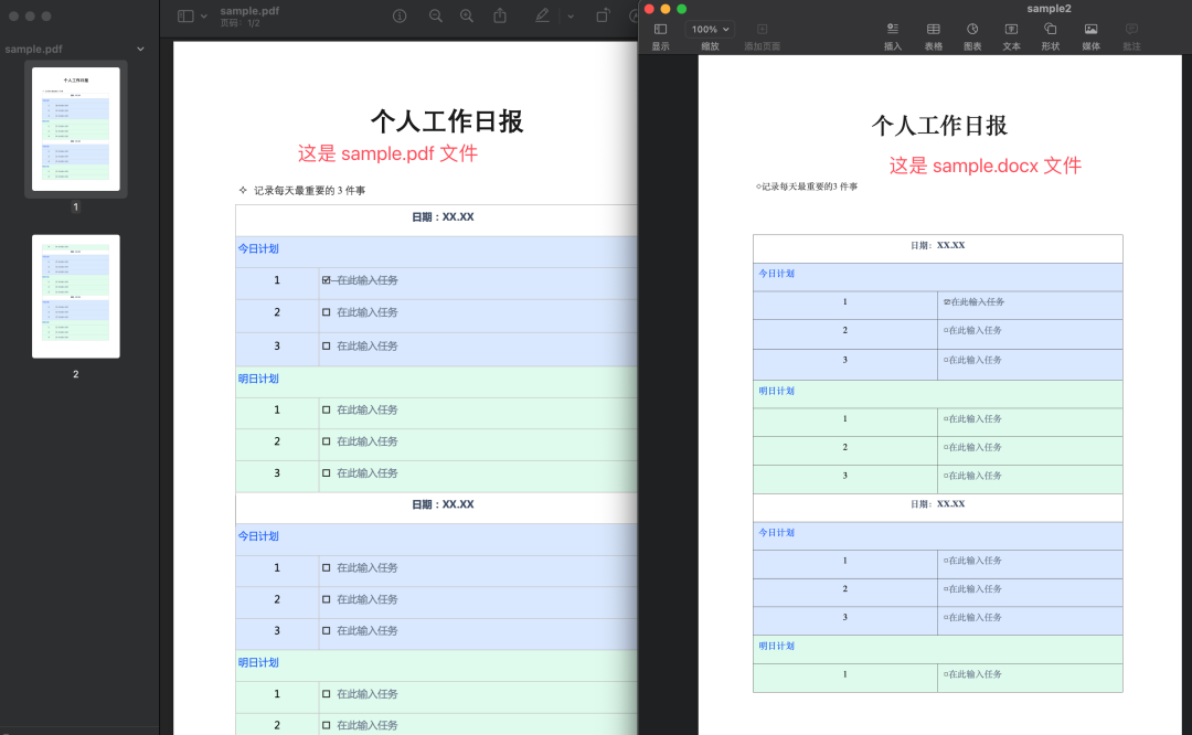 然后,我找了个 PDF 文件 sample.pdf,执行以上代码,转化效果非常完美,如下图所示:
