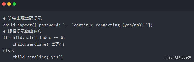 expect()方法能识别程序的输出,匹配到指定内容就往下走:
