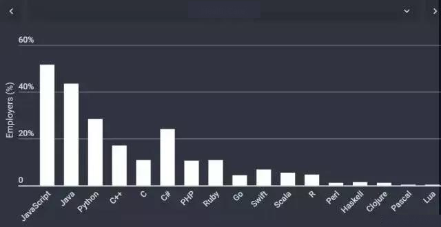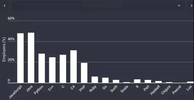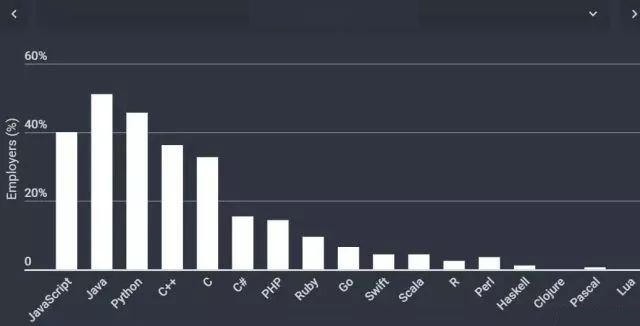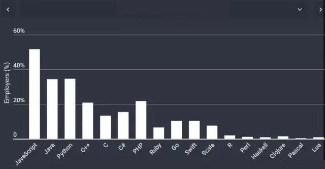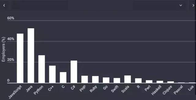 在金融服务行业,排行前三的分别为Java、JavaScript和Python,其中,Java在金融服务领域已经流行了很多年。