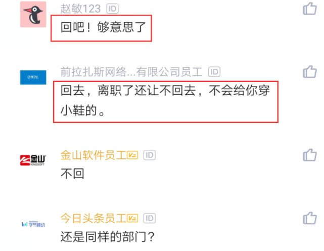 但是网友说还是建议不要回去,要是公司后面找到替代了你的人,还是有可能会把你辞退,而且会不会给你穿小鞋也不一定。