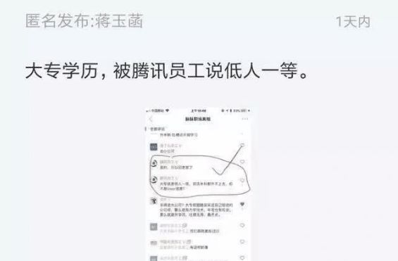 图片中能够看到腾讯程序员的言行,不过学历高的确能够证明这个人有点聪明才智,学习能力也够强,不过不努力的话其实连专科生都不如,把学历当成靠山的人大有人在,而且这样的人失败的也有很多。