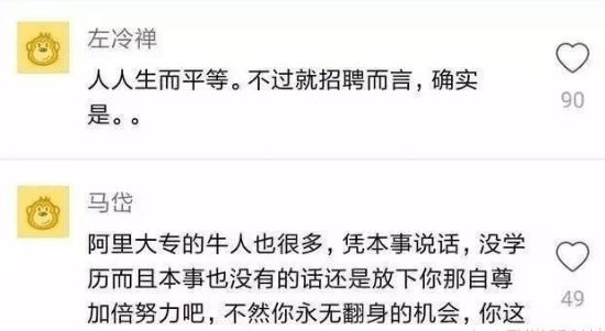 有网友根据这个话题提出的看法很对,每个人都是生来平等的,但是在招聘的时候的确是这样,企业里没有时间分辨每个员工的能力大小;而且学历就等于是你的第一张简历,企业为了能够节省时间只能通过这样的方式收纳人才。