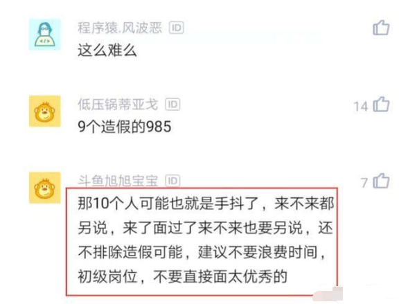 有网友说那10个求职者可能是群发简历的吧,即使他们来你们公司面试,假如面试通过了,他们也不一定会入职吧。所以说你这只是浪费更多的时间,初级岗位,一定不要面试太优秀的人。