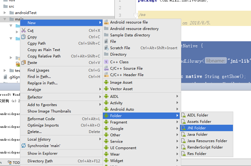 复制.h文件里面的方法 书写返回值JNIEXPORT jstring JNICALL Java_com_wzxl_nativedemo_TestNative_getShow