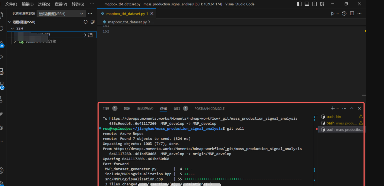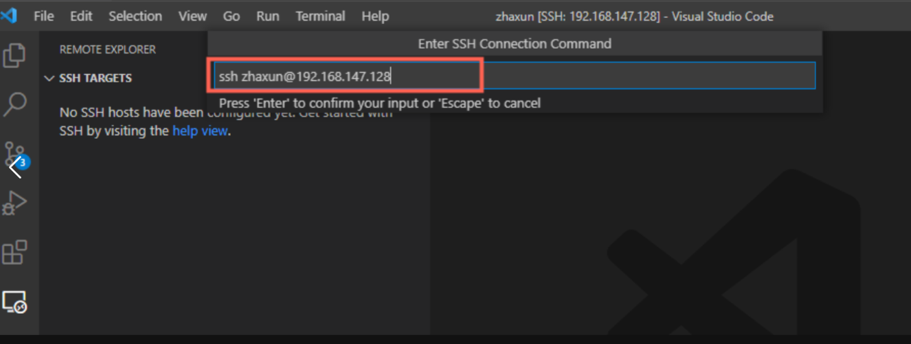 如果远程服务器能够连接成功,此时会需要你输入密码(如果最开始没绑定用户名要先输入用户名):