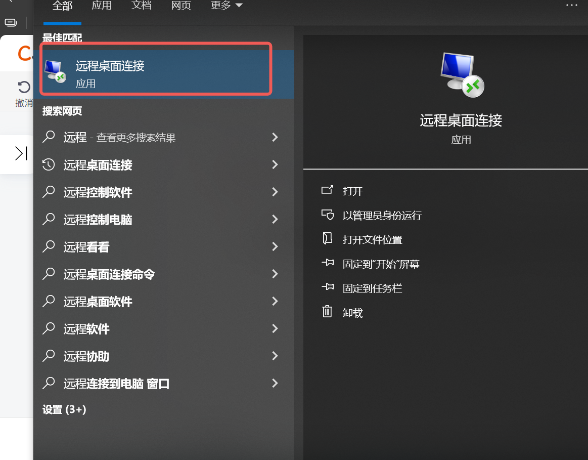 步骤一:在搜索栏搜索远程桌面连接,之后点击此应用