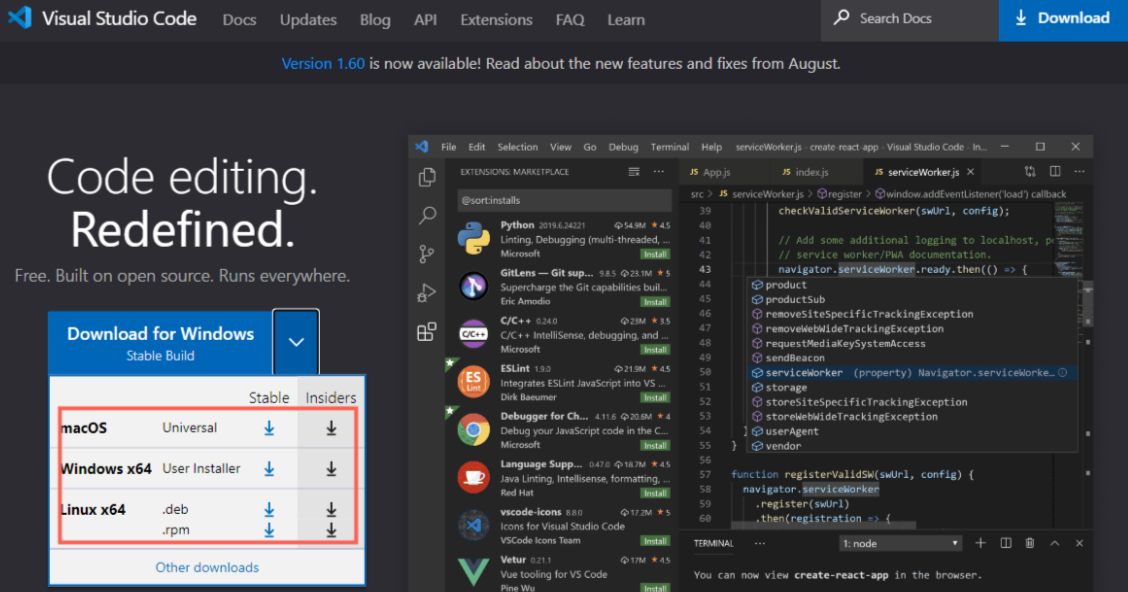 搜索vscode(注意不是visual studio),进入vscode官网进行下载。