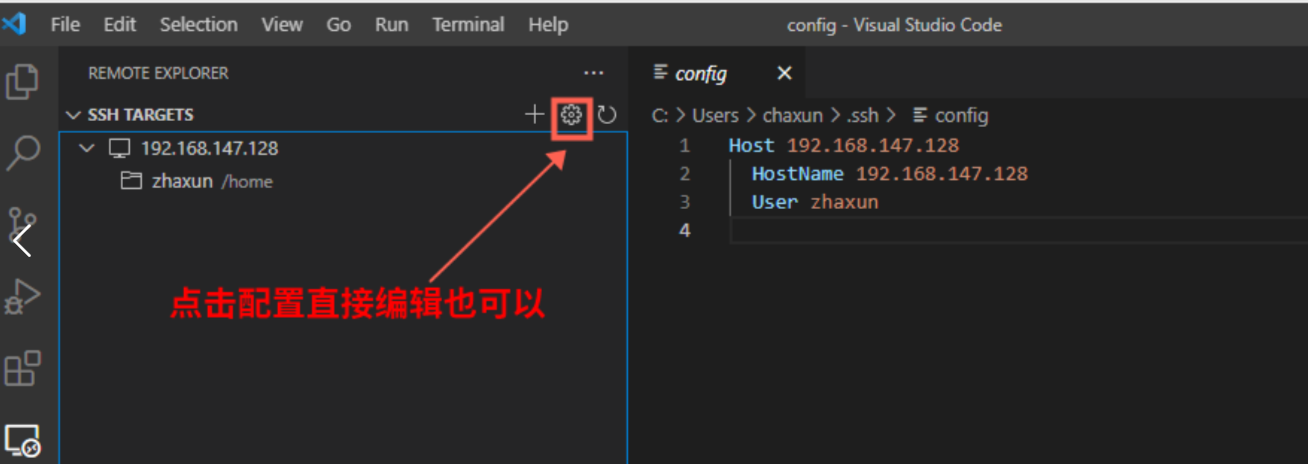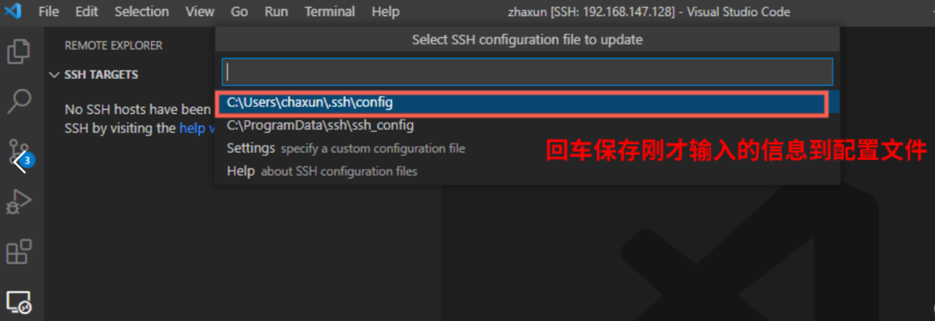 保存之后,会将刚才的连接信息存储在 C:\Users\chaxun\.ssh\config 中。