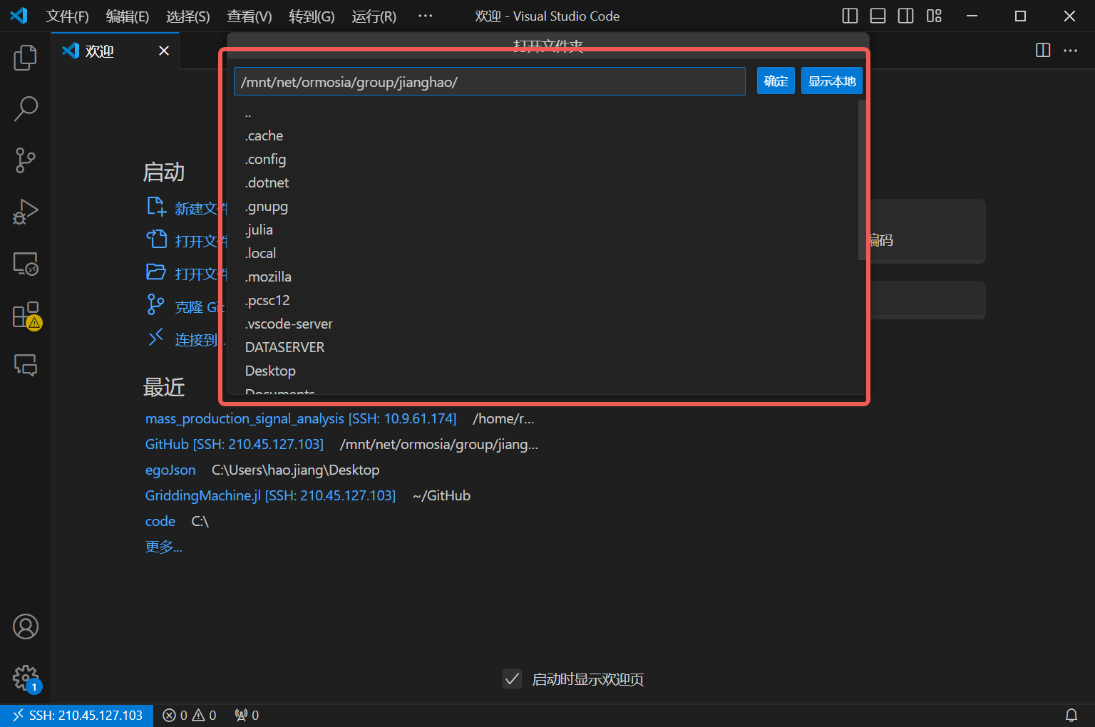点击确定按钮打开/mnt/net/ormosia/group/jianghao/ 之后,会需要再次输入密码: