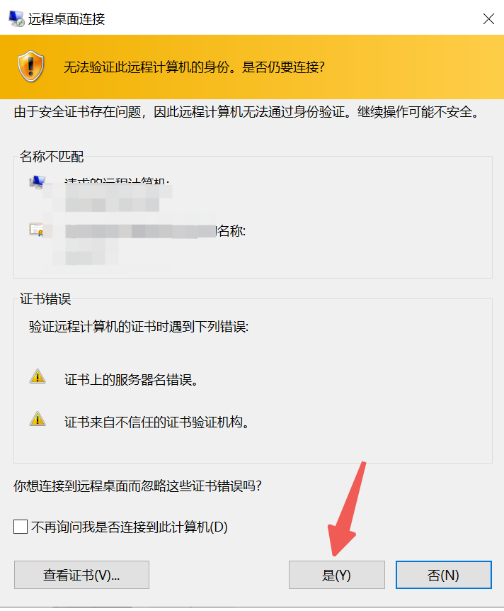 步骤三:连接之后显示警告,点击是即可,之后进入主界面用自己实验室的注册账户即可登录