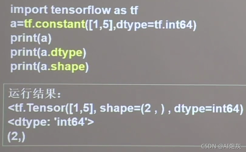 运行结果shape括号内都好隔开几个数字就是几维张量,上图隔开一个数字就是一维的。2表示张量内有两个元素。