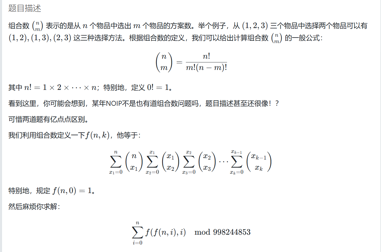 k=2k=2k=2时,f(n,2)=∑x1=0n(nx1)∗∑x2=0x1(x1x2)f(n,2)=\displaystyle\sum\limits_{x_1=0}^n\binom{n}{x_1}*\sum\limits_{x_2=0}^{x_1}\binom{x_1}{x_2}f(n,2)=x1=0∑n(x1n)∗x2=0∑x1(x2x1)