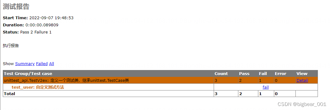 runner = HTMLTestRunner(stream=f, title='测试报告', description='执行报告')