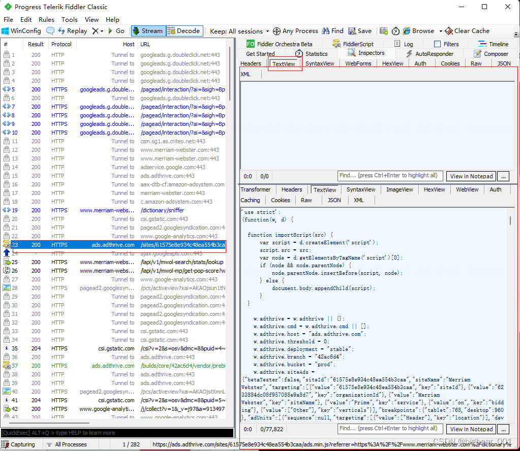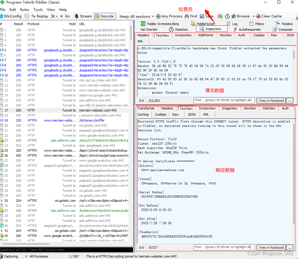 (5)查看请求和响应的详细信息(检查员Inspectors)