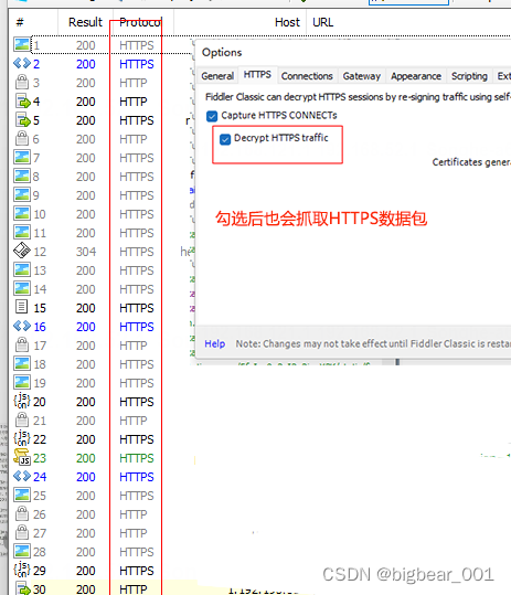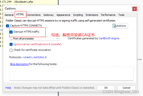 Tools→Options→HTTPS勾选Decrypt HTTPS trafic(解密并安装CA证书)