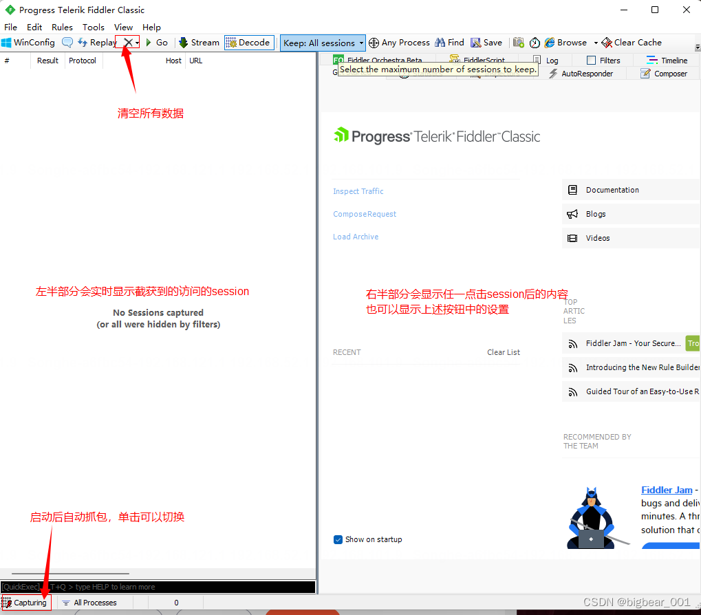 (2)启动Fiddler,抓取HTTP数据包(抓取Capture)