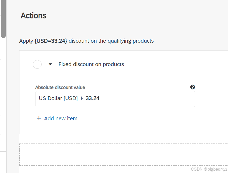 Actions选择对应的折扣,这里选择扣除固定费用33.24US