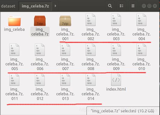 1.下载CelebA中的img_celeba.7z ,文件是14个压缩包分卷,分别是001-014。