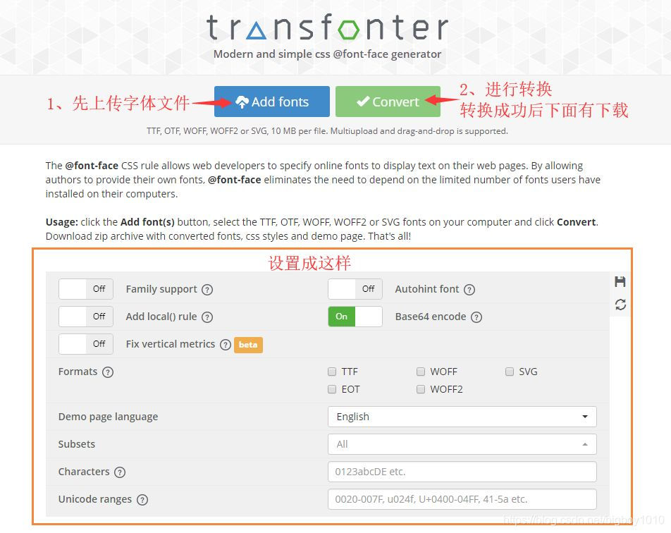 转换的网址:https://transfonter.org