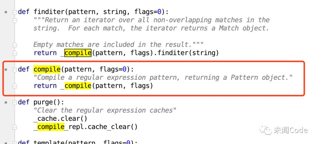 我们来看源代码,正则表达式 re.compile调用的是 _compile,我们就去看 _compile的源代码,如下图所示: