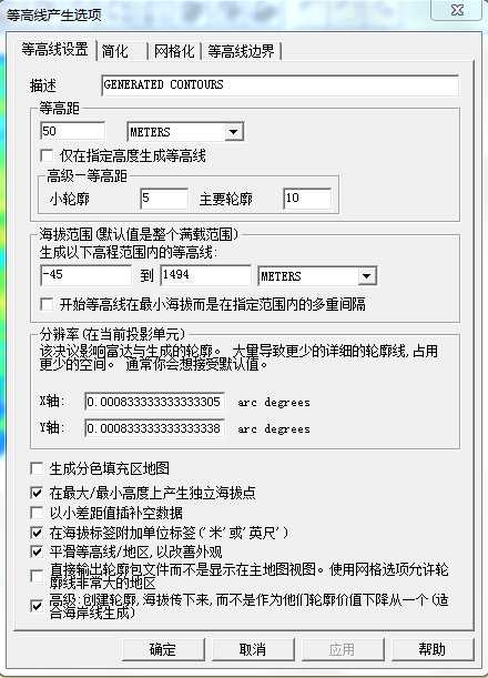8. 生成等高线,在global mapper中选择【分析】->【生成等高线】,弹出如下对话框: