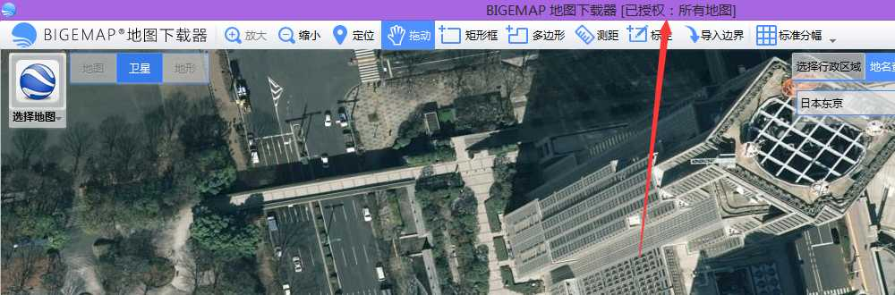 1. 启动BIGEMAP地图下载器软件,查看左上角是否显示【已授权:所有地图】,如果没有该显示,请联系我们的客服人员。如下图所示: