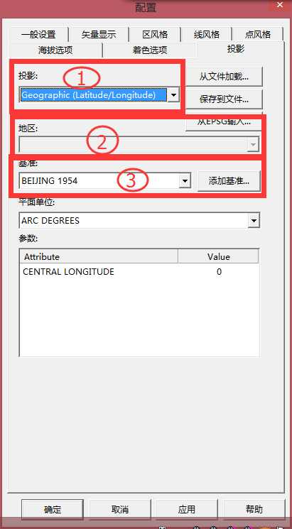 上图②中是选择要转换区域的对应分度带的带号,如下图: