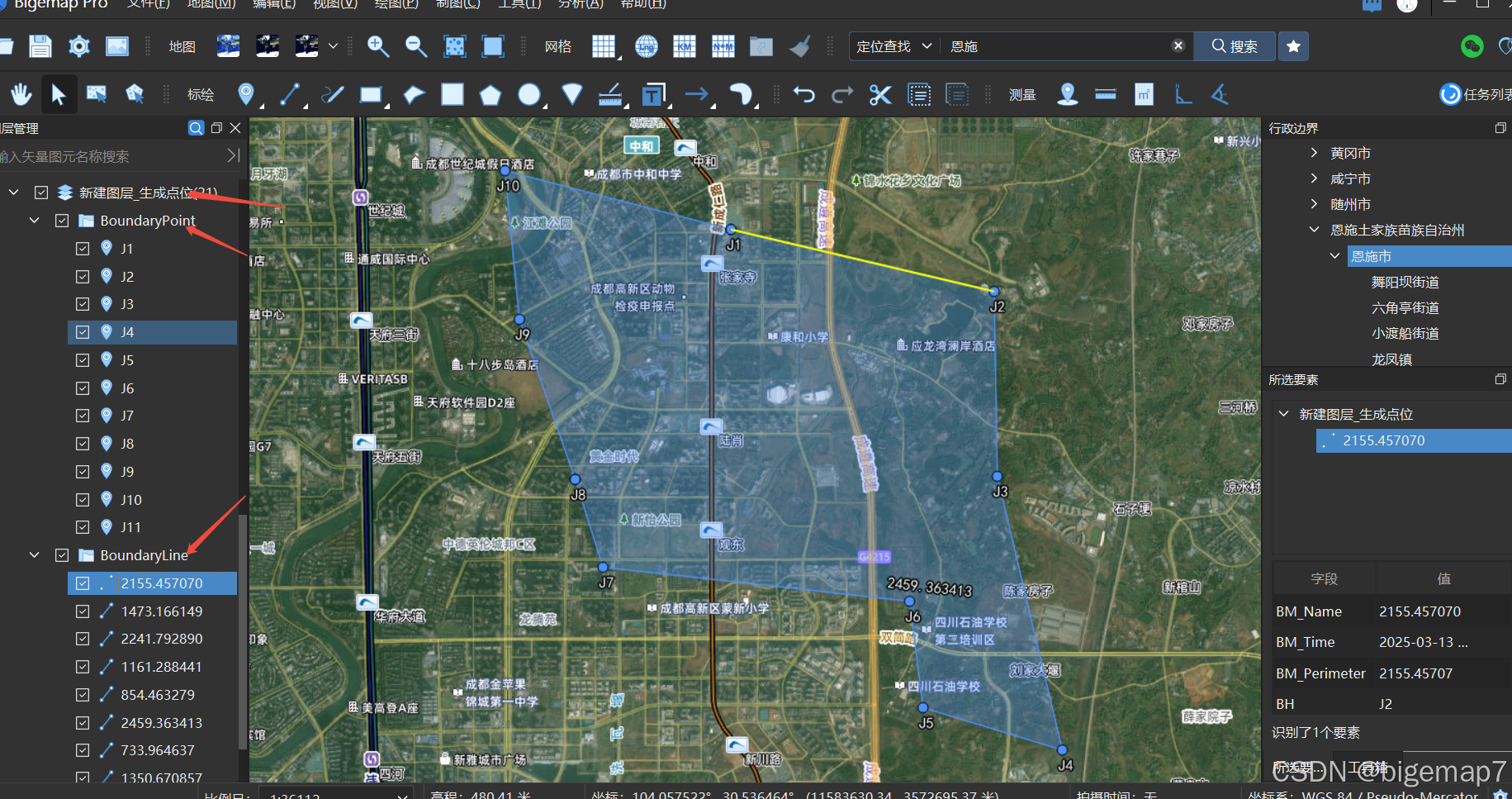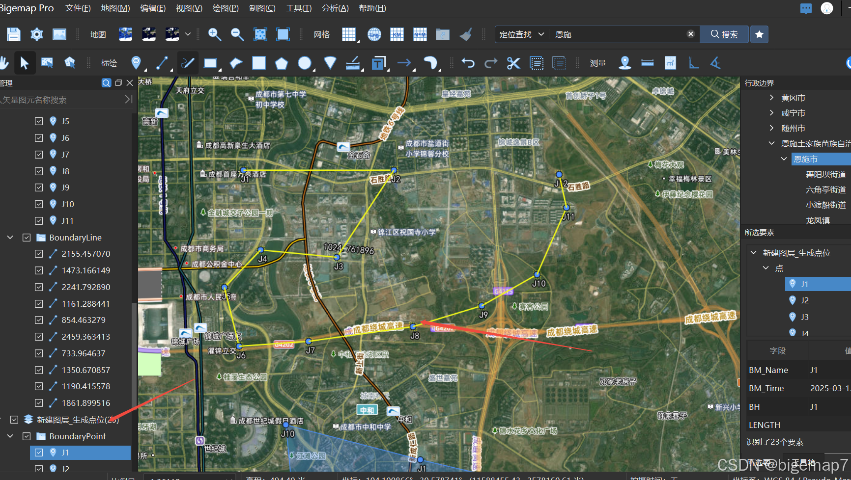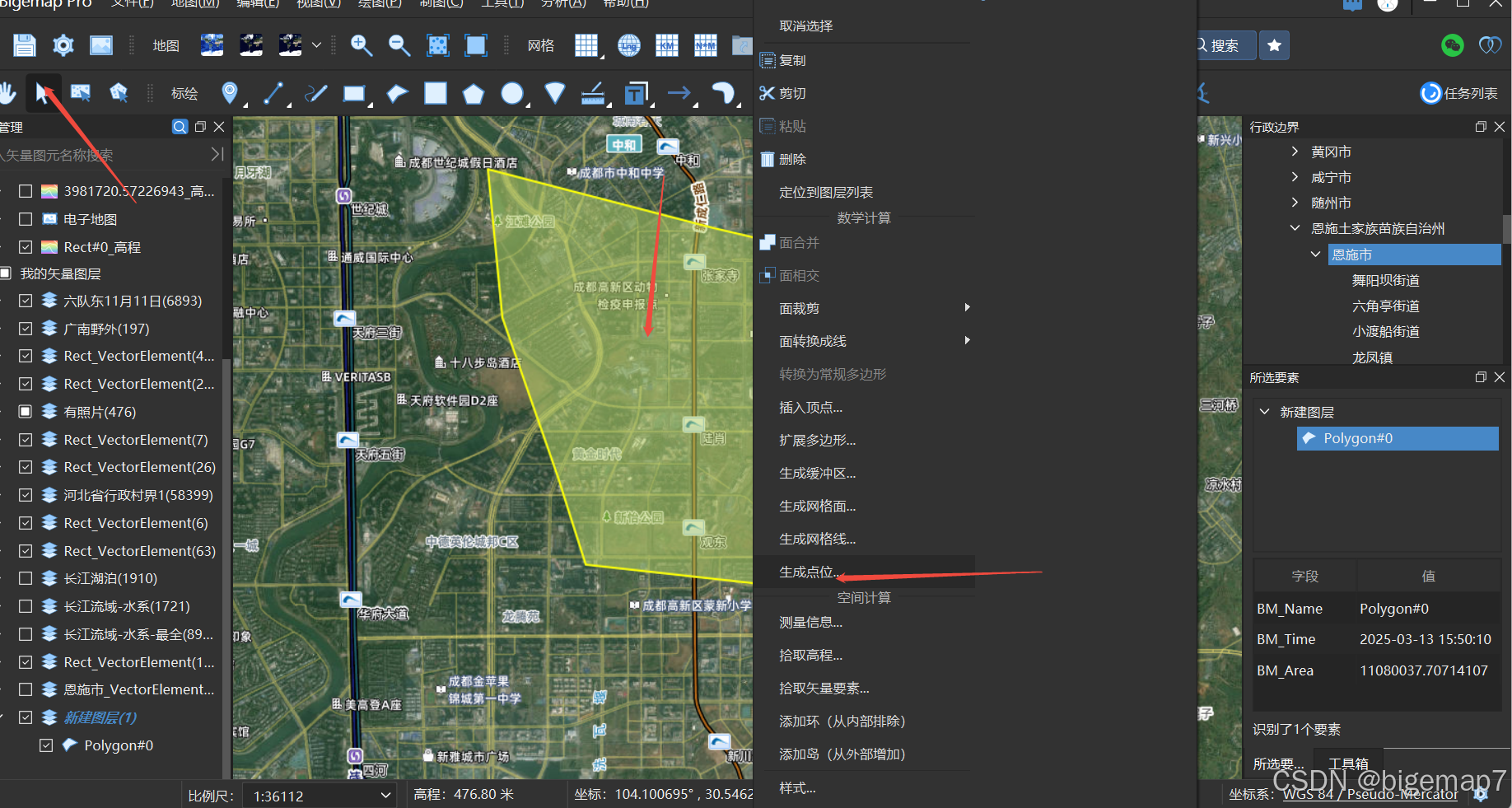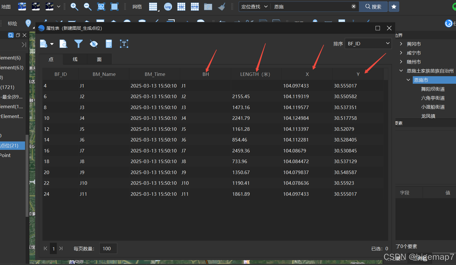 这就是它生成的点位,会形成一个新的图层,面的话还有对应的线段长