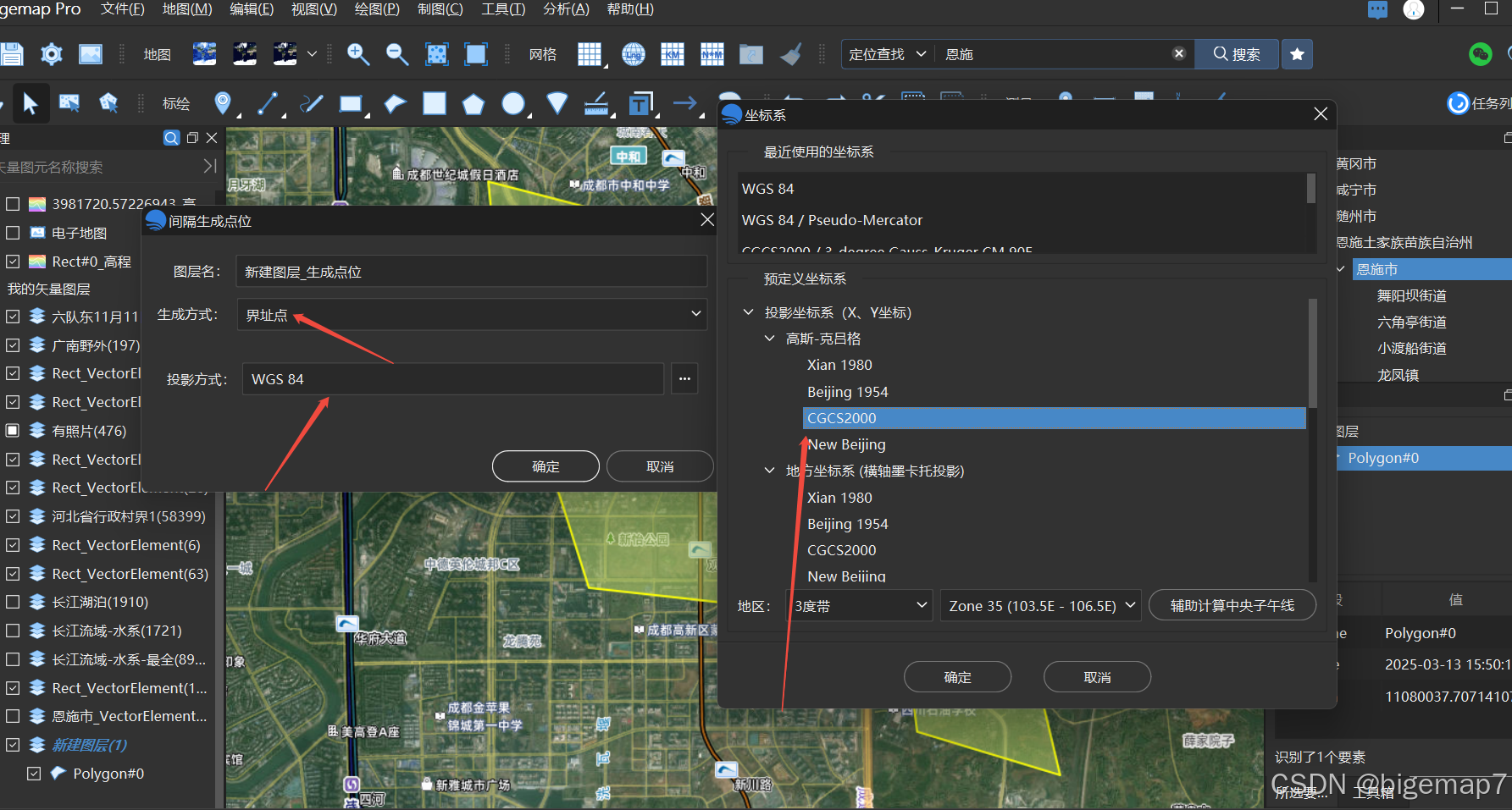 生成方式点击按照界址点生成,投影方式可以选择其他的,比如cgcs2000等等,点击确定