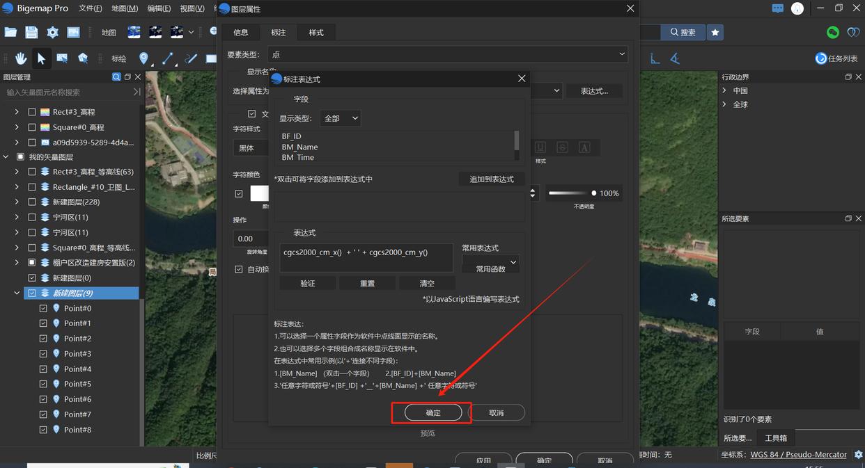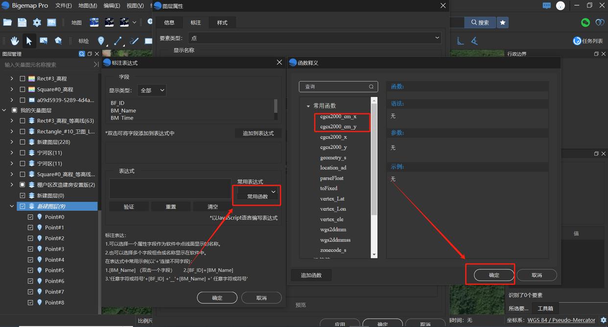 点击常用函数,在常用函数中分别选择cgcs2000_cm_x和cgcs2000_cm_y