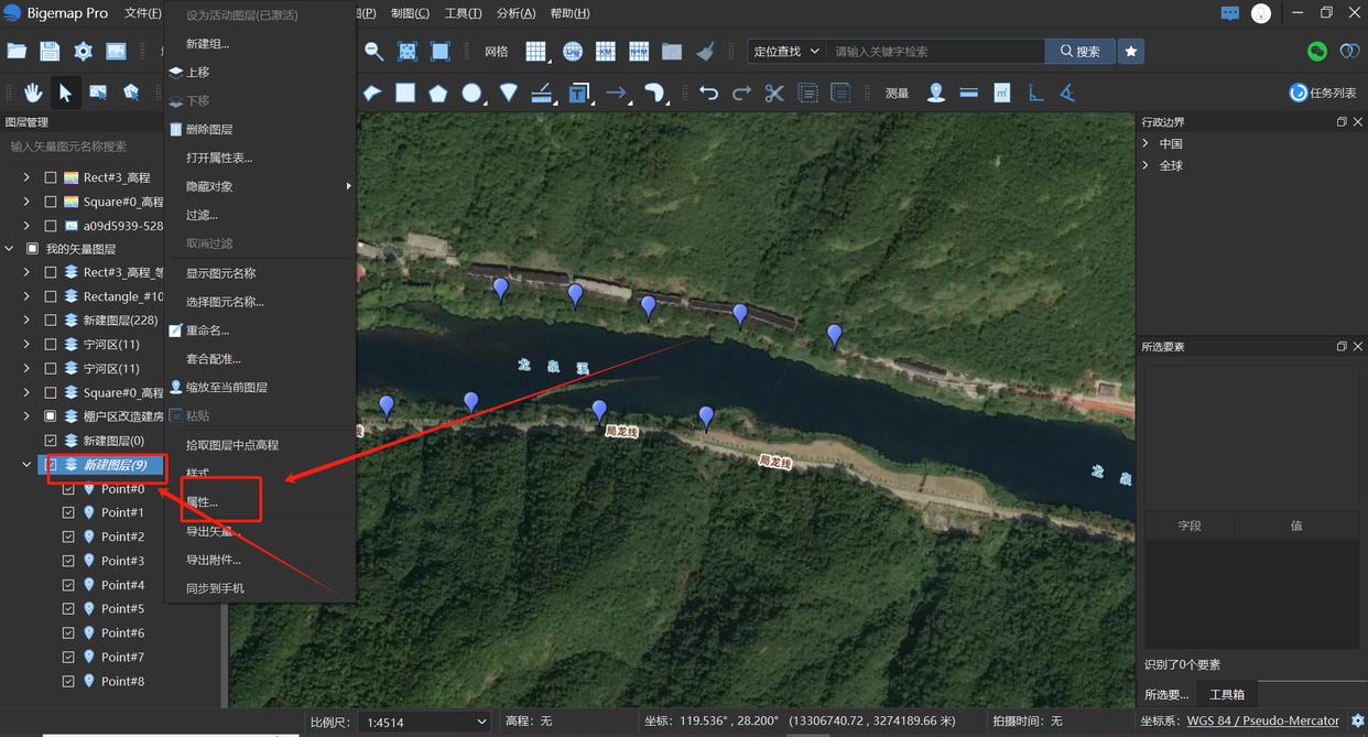 打开bigemap pro软件,选中图层鼠标右键,点击属性