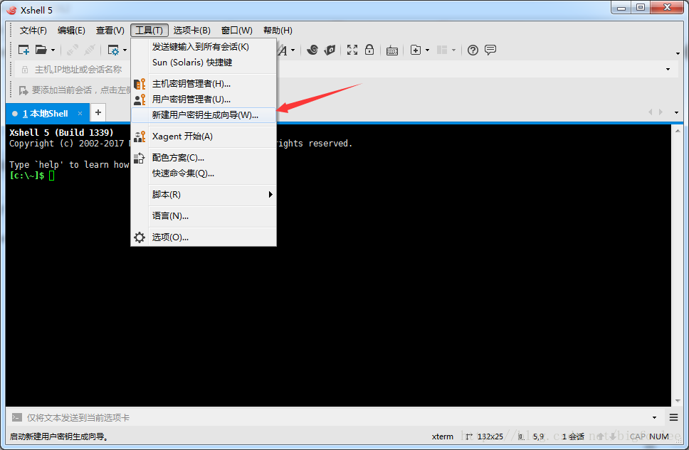 下图为xshell生成公钥的方式。 在xshell中主机密钥为公钥,用户密钥为密钥。
