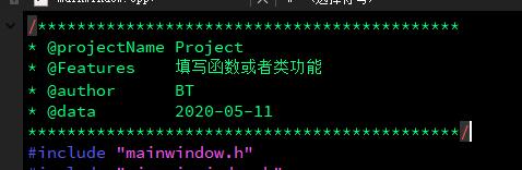注释包括:工程名称、功能、作者、时间、还可以添加其它