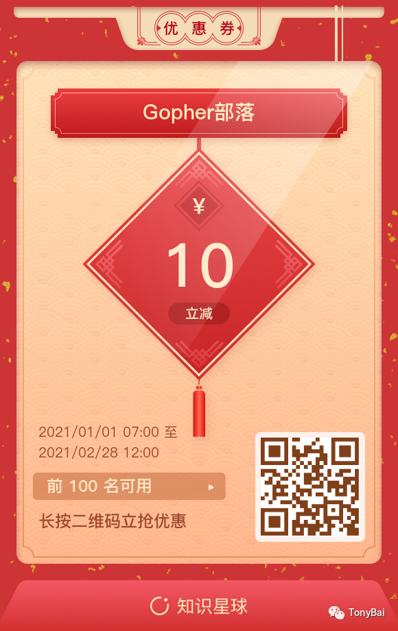 目前该技术专栏正在新春促销!关注我的个人公众号“iamtonybai”,发送“go专栏活动”即可获取专栏专属优惠码,可在订阅专栏时抵扣20元哦。