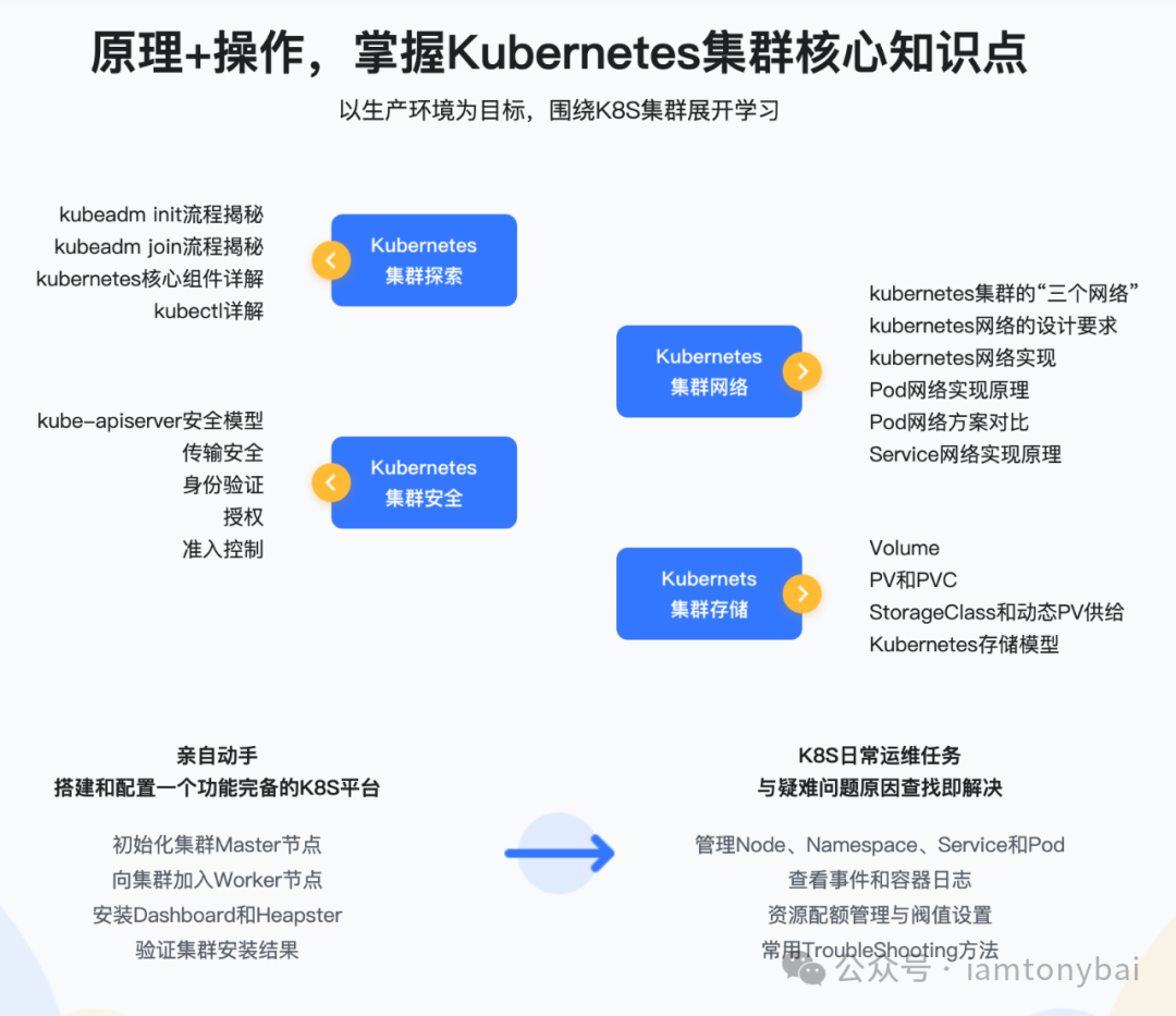 我正打算将多年前深受好评的慕课网Kubernetes实战课(https://coding.imooc.com/class/284.html)内容(覆盖集群探索、网络、安全、存储、诊断、Operator等核心知识点)进行精选和更新,并逐步放入我的知识星球「Go & AI 精进营」 的【Kubernetes进阶】 专栏。这对于理解K8s底层、打好云原生基础价值依旧。