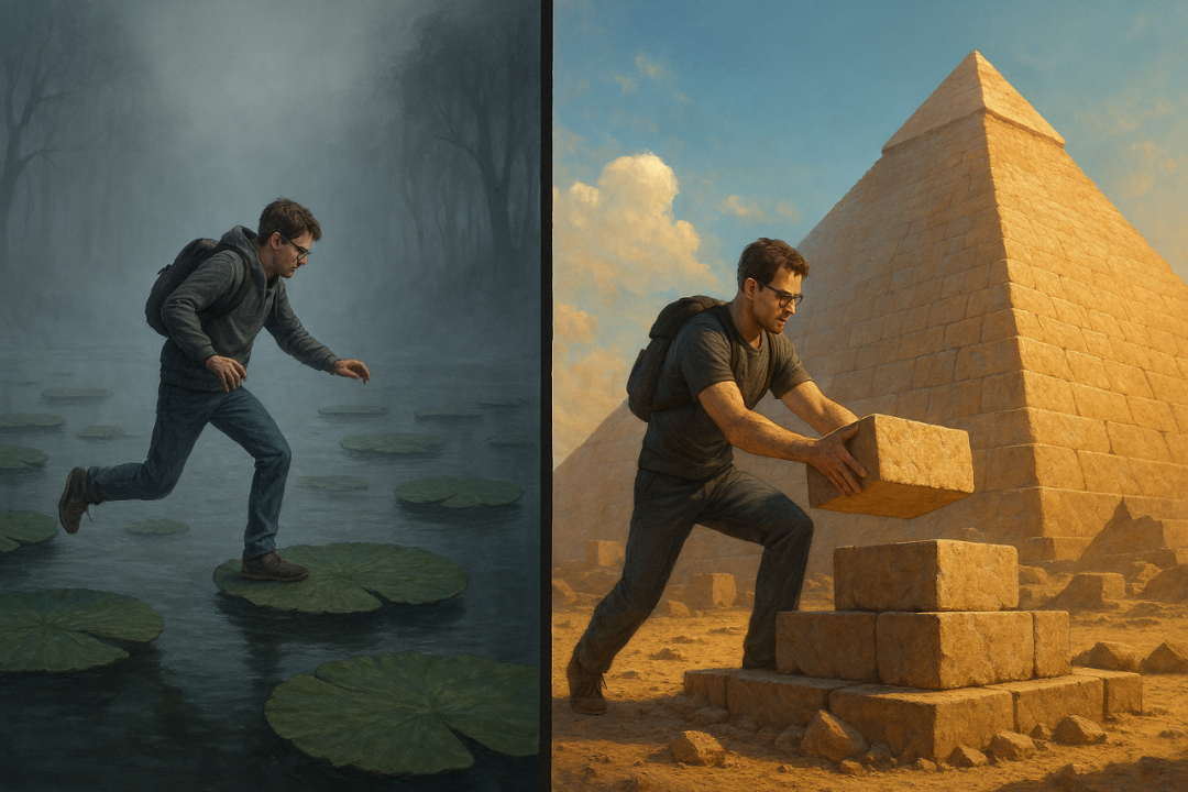 我当前的工作,是在随机跳向下一片看似新奇的荷叶,还是在为我的金字塔奠定坚实的基础?