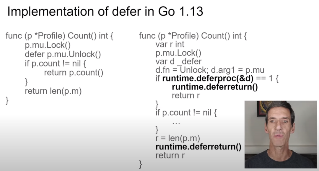 GopherCon 2020: Implementing Faster Defers by Dan Scales - https://www.youtube.com/watch?v=DHVeUsrKcbM