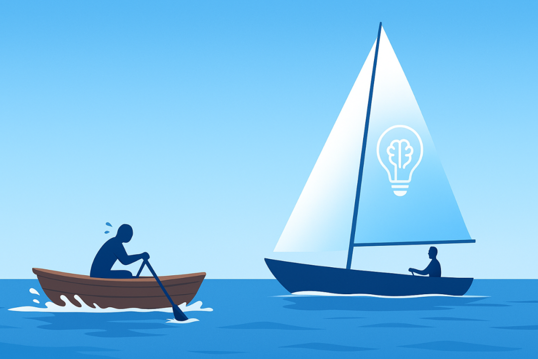 “The grind-maxxed founder is trying to row the boat harder. The leverage-maxxed founder has a sail.” (拼命“卷”的创始人,正试图更用力地划船。而善用杠杆的创始人,早已扬起了帆。)