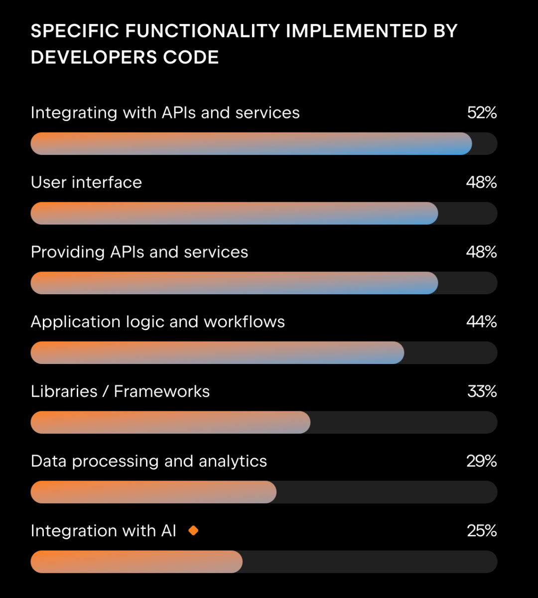 报告指出,现代开发者的核心工作正在从构建孤立的应用,转向构建系统间的“连接性组织 (connective tissue)”。