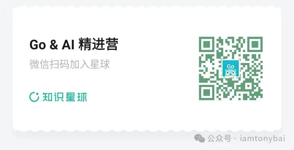 加入我的 「Go & AI 精进营」。在这里,我们不聊厚黑学,只聊如何拿到通往未来的船票。