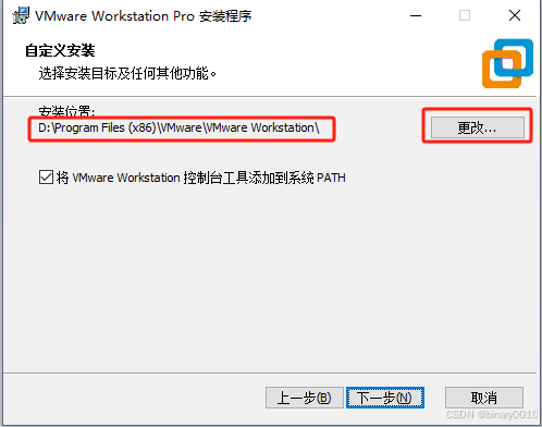 双击VMware-workstation-full-17.6.1-24319023.exe安装包,一路点击“下一步”和“确认”即可,安装路径根据自己偏好设置,这里将安装目录调整到D盘。
