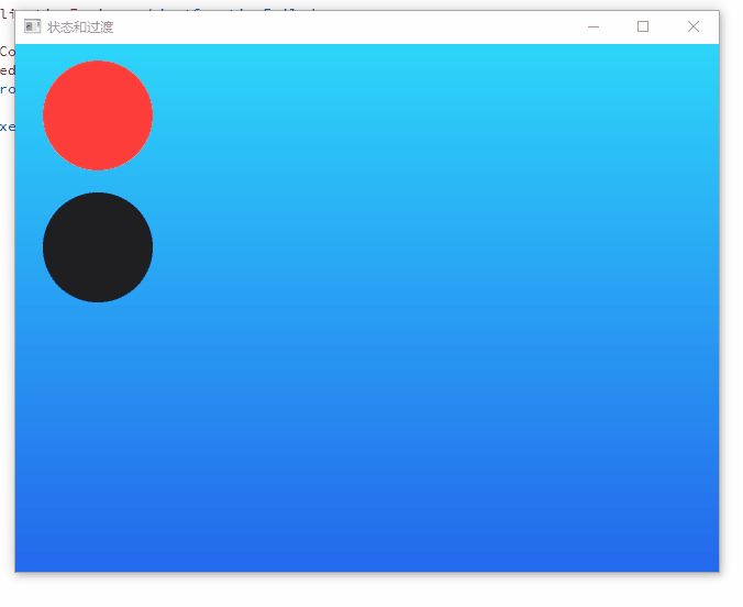 运行上述代码后,你将看到一个模拟的交通信号灯界面。初始状态为 “stop”,上方的红灯亮起,下方的绿灯熄灭。当你点击界面时,信号灯的状态会在 “stop” 和 “go” 之间切换,并且在从 “stop” 到 “go” 的状态切换过程中,会有 2 秒的颜色过渡动画。