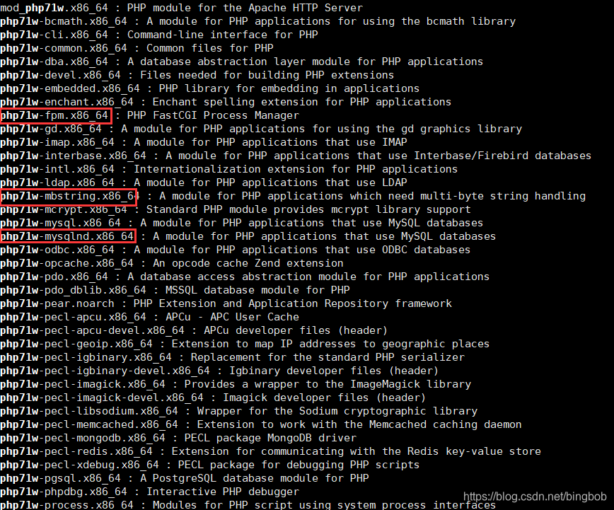 3、yum 安装php71w和各种拓展,选自己需要的即可。