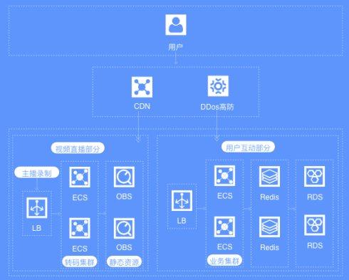 弹性负载均衡就是把数据流量分摊到多个操作单元上进行执行,例如Web服务器、FTP服务器、企业关键应用服务器和其它关键任务服务器等,从而共同完成工作任务。在直播中,海量用户互动产生的数据,以及主播通过OBS等软件录制的实时影像,经过负载均衡将访问流量自动分发到多台云服务器上,经过处理再传输给主播和用户,实现了更高水平的应用容错。(如下图)