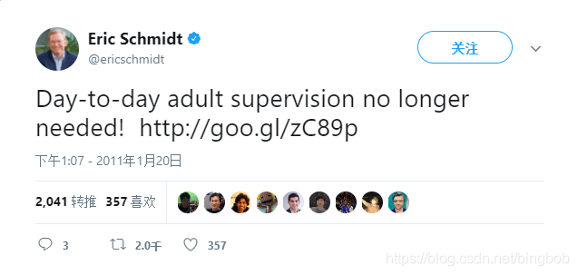 2011年卸任谷歌CEO的施密特,发推称“(公司)终于不再需要日常的成人监督了”,这个扮演着监护人角色的CEO,似乎提前完成了自己的使命,尽管他离开了谷歌,但是这家可称伟大的公司,将永远打上他的烙印。