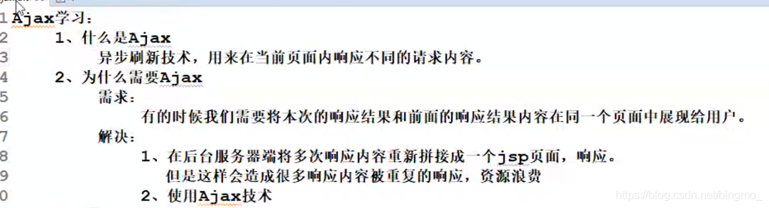 ajax的主要解决的问题:在当前的显示页面内,显示其他的响应内容,避免响应内容被重复的响应。