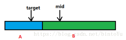2、mid和target都在B上。 ---------------> 正常二分查找